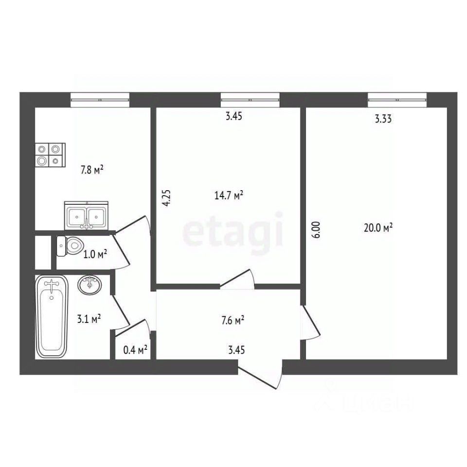 Общая площадь: 54,6 м²