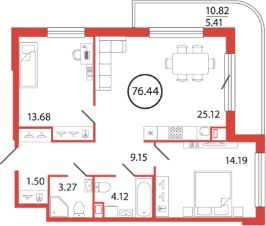 Продаётся e3 комнатная квартира (евро) в жилищном комплексе "Энфилд" (корпус Дом 21 Секция 1). Общая площадь 76,44 кв. м, площадь комнат 13,68 кв.м, 14,19 кв.м. 2 санузла. Квартира расположена на 2 этаже 12 этажного дома. Срок сдачи корпуса IV квартал 2027 года.
