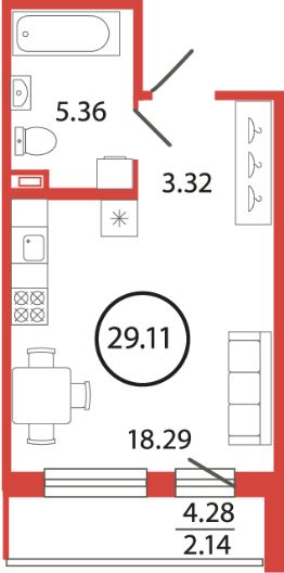 Продаётся студия в жилищном комплексе "Энфилд" (корпус Дом 21 Секция 1). Общая площадь 29,11 кв. м, площадь комнат 18,29 кв.м. Санузел. Квартира расположена на 2 этаже 12 этажного дома. Срок сдачи корпуса IV квартал 2027 года.