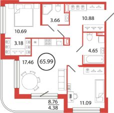 Продаётся e3 комнатная квартира (евро) в жилищном комплексе "Энфилд" (корпус Дом 21 Секция 1). Общая площадь 65,99 кв. м, площадь комнат 11,09 кв.м, 10,69 кв.м. 2 санузла. Квартира расположена на 2 этаже 12 этажного дома. Срок сдачи корпуса IV квартал 2027 года.