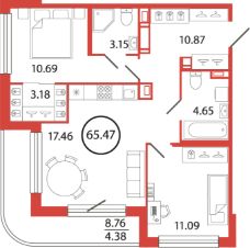 Продаётся e3 комнатная квартира (евро) в жилищном комплексе "Энфилд" (корпус Дом 21 Секция 1). Общая площадь 65,47 кв. м, площадь комнат 11,09 кв.м, 10,69 кв.м. 2 санузла. Квартира расположена на 10 этаже 12 этажного дома. Срок сдачи корпуса IV квартал 2027 года.