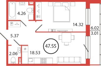 Продаётся e2 комнатная квартира (евро) в жилищном комплексе "Энфилд" (корпус Дом 21 Секция 2). Общая площадь 47,55 кв. м, площадь комнат 14,32 кв.м. 2 санузла. Квартира расположена на 2 этаже 12 этажного дома. Срок сдачи корпуса IV квартал 2027 года.