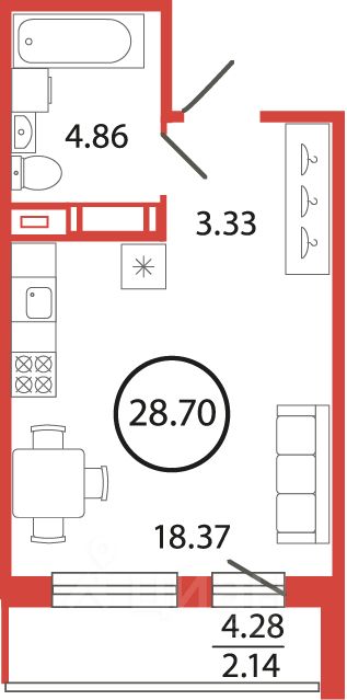 Продаётся студия в жилищном комплексе "Энфилд" (корпус Дом 21 Секция 2). Общая площадь 28,7 кв. м, площадь комнат 18,39 кв.м. Санузел. Квартира расположена на 3 этаже 12 этажного дома. Срок сдачи корпуса IV квартал 2027 года.