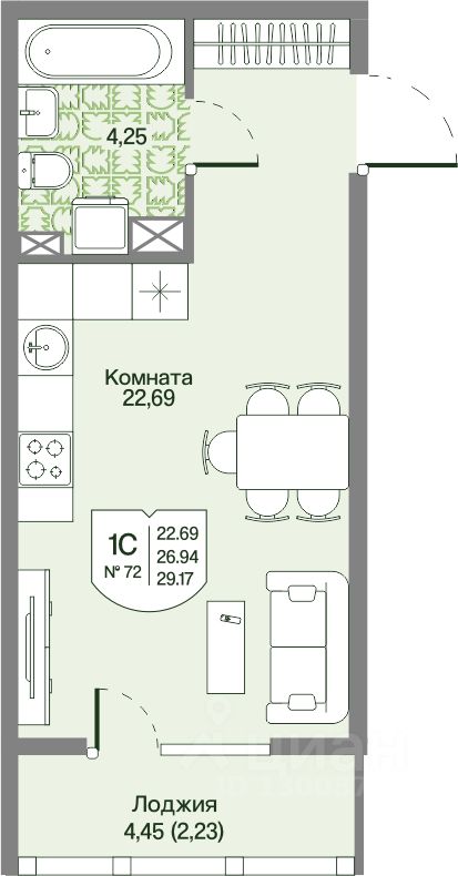 Продается квартира Студия в Квартале "Охтинские Высоты".