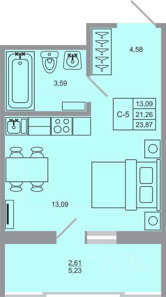 Продаётся студия в строящемся доме (Корпус 19), срок сдачи: III-кв. 2026, общей площадью 23.87 кв.м., на 14 этаже. Новый жилой комплекс "Стороны света-2" от застройщика "ГК Прок" расположен по адресу Ленинградская область, Всеволожский район, посёлок Бугры, Тихая улица.