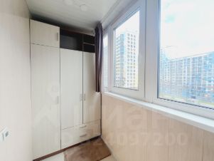 Просторная лоджия площадью 5,2 м2 (не учтена в площади квартиры) утеплена и превращена в маленькую комнату. Двухкамерные стеклопакеты, проведено освещение, пол с подогревом. На лоджии поместился небольшой диванчик и вместительный шкаф.