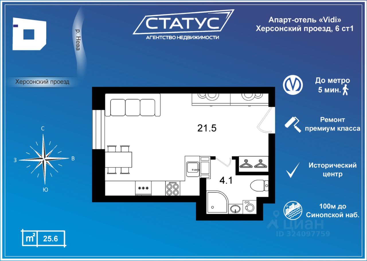 Апартаменты в апарт-отеле Vidi, в 100 м от Синопской набережной.