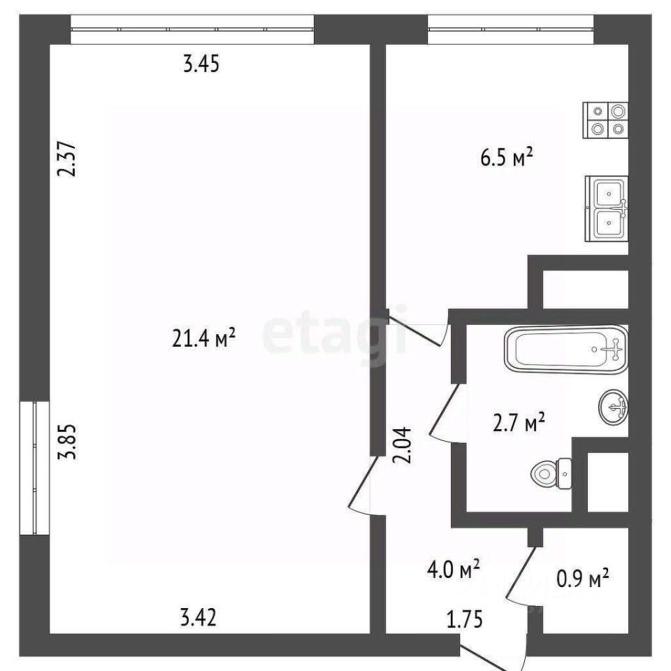 На кухне газ, а совмещенный санузел оборудован полноценной душевой кабиной 90х130 см.