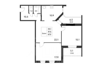 Квартира площадью 87,5 м2 с учетом площади двух лоджий. Лоджии можно утеплить и при желании присоединить. Окна на 3 стороны, что дает много света, пространства и потрясающие виды на город.