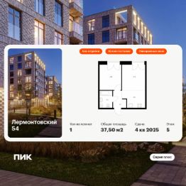 Продаётся 1-комн. квартира площадью 37,5 кв.м на 5 этаже 9 этажного дома (Корпус 2.2, Секция 9) проекта ПИК Лермонтовский 54. Светлый просторный подъезд на уровне земли, функциональная планировка, большие окна, без отделки.