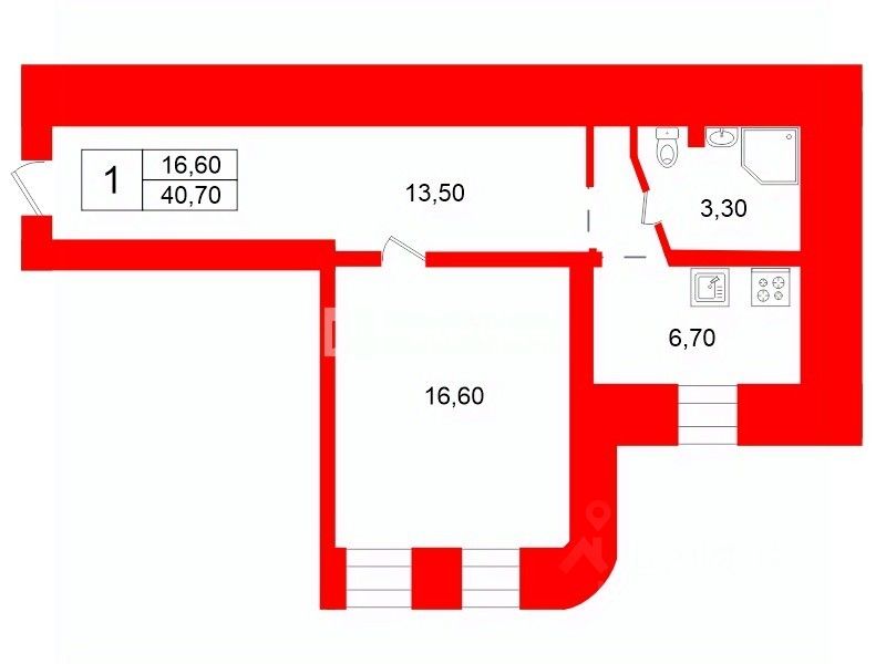 40,7 м²