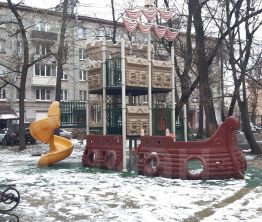 Окно комнаты выходит в тихий, ухоженный зеленый двор с детскими и спортивными площадками, окно кухни на улицу.