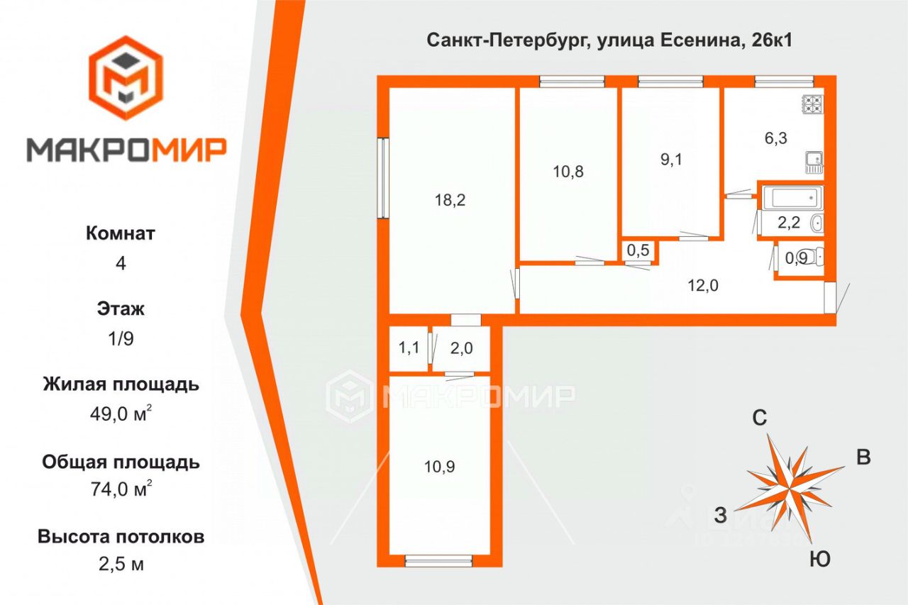 Арт. 126154008 В срочной продаже 4-комнатная квартира у метро!