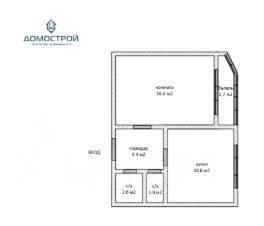 Площадь квартиры 34.6 м2 + балкон 2.7 м2, кухня 10.2 м2, комната 16 м2, санузел раздельный.