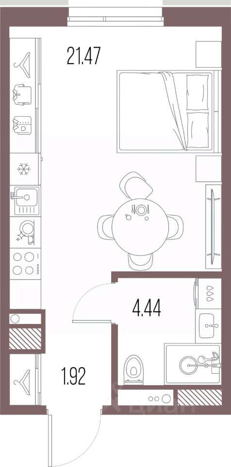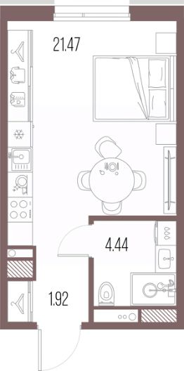 Продается 1-комн. квартира-студия от застройщика в ЖК "LEGENDA Васильевского" на 10 этаже. Общая площадь: 27.83 кв.м. Высота потолков 2.72 м.