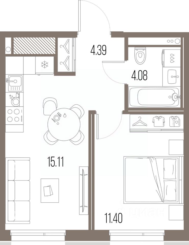 Просторная 1-комн. квартира в ЖК "LEGENDA Васильевского" на 4 этаже. Общая площадь: 34.98 кв.м. Высота потолков 2.72 м.
