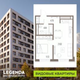 Однокомнатная квартира с предчистовой отделкой в ЖК "LEGENDA Васильевского" на 4 этаже. Общая площадь: 41.78 кв.м., жилая: 11.13 кв.м., площадь просторной кухни-столовой: 21.03 кв.м. Все окна выходят на одну сторону. В квартире один совмещенный санузел. Высота потолков 2.72 м.