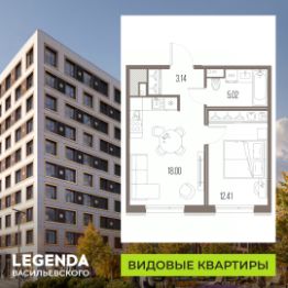 Продается 1-комн. квартира с предчистовой отделкой в ЖК "LEGENDA Васильевского" на 5 этаже. Общая площадь: 38.57 кв.м., жилая: 12.41 кв.м., площадь просторной кухни-столовой: 18 кв.м. Все окна выходят на одну сторону. В квартире один совмещенный санузел. Высота потолков 2.72 м.