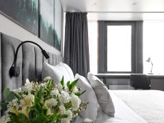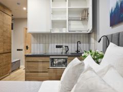 МЕБЕЛЬ: Кровать с ортопедическим матрасом 160х200, вместительный шкаф, совмещенная рабочая и обеденная зона с видом на панораму города, удобства для приготовления еды в номере. Весь текстиль так же входит в стоимость.