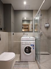 ТЕХНИКА: варочная панель, духовой шкаф, микроволновка, холодильник, посудомоечная машина, проточный фильтр с питьевой водой, телевизор смарт тв, стиральная машина, фен, утюг. Wi-Fi уже в номере. Управление телевизором и чайником возможно как вручную, так и при помощи голосового помощника Алиса.