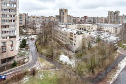 - Площадь 104,1 м², 8/9 этаж кирпичного дома (1999 г.п., застройщик — "ЛенСпецСтрой").
