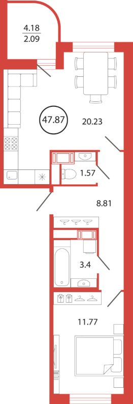 Продаётся e2 комнатная квартира (евро) в жилищном комплексе "Энфилд" (корпус Дом 22 секция 3). Общая площадь 47.87 кв. м, площадь комнат 11.77 кв.м. раздельный санузел. Квартира расположена на 2 этаже 12 этажного дома. Корпус сдан.