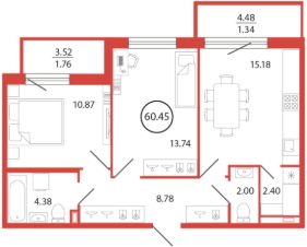Продаётся e3 комнатная квартира (евро) в жилищном комплексе "Энфилд" (корпус Дом 18 секция 2). Общая площадь 60,45 кв. м, площадь комнат 10,87 кв.м, 13,74 кв.м. 2 санузла. Квартира расположена на 5 этаже 12 этажного дома. Срок сдачи корпуса IV квартал 2027 года.