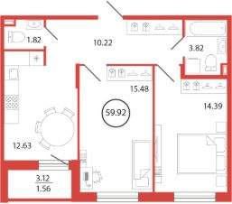 Продаётся 2 комнатная квартира в жилищном комплексе "Энфилд" (корпус Дом 18 секция 2). Общая площадь 59,92 кв. м, площадь комнат 15,48 кв.м, 14,39 кв.м. 2 санузла. Квартира расположена на 5 этаже 12 этажного дома. Срок сдачи корпуса IV квартал 2027 года.