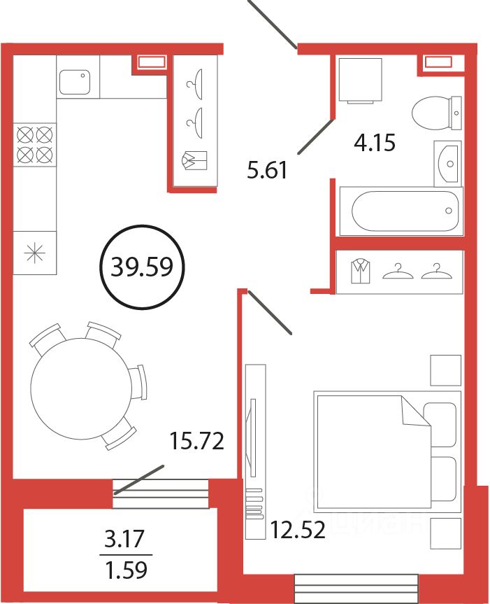 Продаётся e2 комнатная квартира (евро) в жилищном комплексе "Энфилд" (корпус Дом 18 секция 3). Общая площадь 39,59 кв. м, площадь комнат 12,52 кв.м. Санузел. Квартира расположена на 2 этаже 12 этажного дома. Срок сдачи корпуса IV квартал 2027 года.