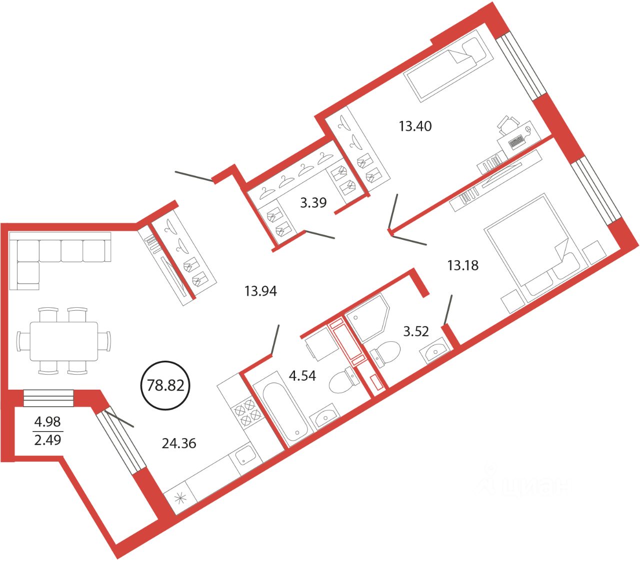 Продаётся e3 комнатная квартира (евро) в жилищном комплексе "Энфилд" (корпус Дом 18 секция 4). Общая площадь 74,42 кв. м, площадь комнат 13,33 кв.м, 13,33 кв.м. 2 санузла. Квартира расположена на 11 этаже 12 этажного дома. Срок сдачи корпуса IV квартал 2027 года.