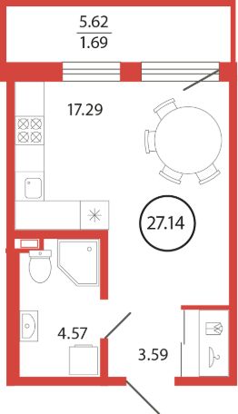 Продаётся студия в жилищном комплексе "Энфилд" (корпус Дом 18 секция 5). Общая площадь 27,14 кв. м, площадь комнат 17,29 кв.м. Санузел. Квартира расположена на 2 этаже 12 этажного дома. Срок сдачи корпуса IV квартал 2027 года.