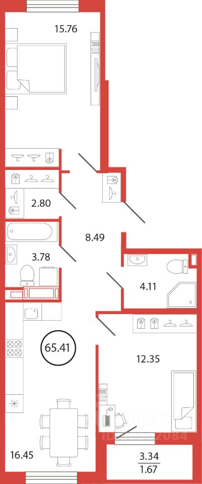 Продаётся e3 комнатная квартира (евро) в жилищном комплексе "Энфилд" (корпус Дом 18 секция 7). Общая площадь 65,41 кв. м, площадь комнат 12,35 кв.м, 15,76 кв.м. 2 санузла. Квартира расположена на 9 этаже 12 этажного дома. Срок сдачи корпуса IV квартал 2027 года.