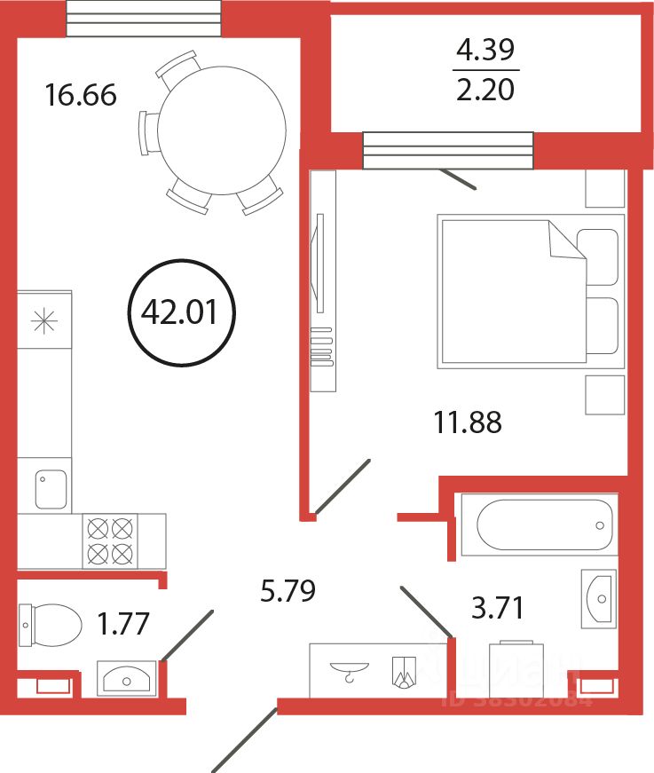 Продаётся e2 комнатная квартира (евро) в жилищном комплексе "Энфилд" (корпус Дом 18 секция 8). Общая площадь 42,01 кв. м, площадь комнат 11,88 кв.м. Санузел. Квартира расположена на 7 этаже 12 этажного дома. Срок сдачи корпуса IV квартал 2027 года.