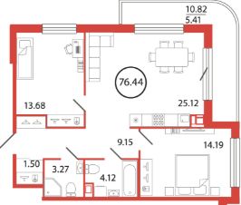 Продаётся e3 комнатная квартира (евро) в жилищном комплексе "Энфилд" (корпус Дом 21 Секция 1). Общая площадь 76,44 кв. м, площадь комнат 13,68 кв.м, 14,19 кв.м. 2 санузла. Квартира расположена на 3 этаже 12 этажного дома. Срок сдачи корпуса IV квартал 2027 года.