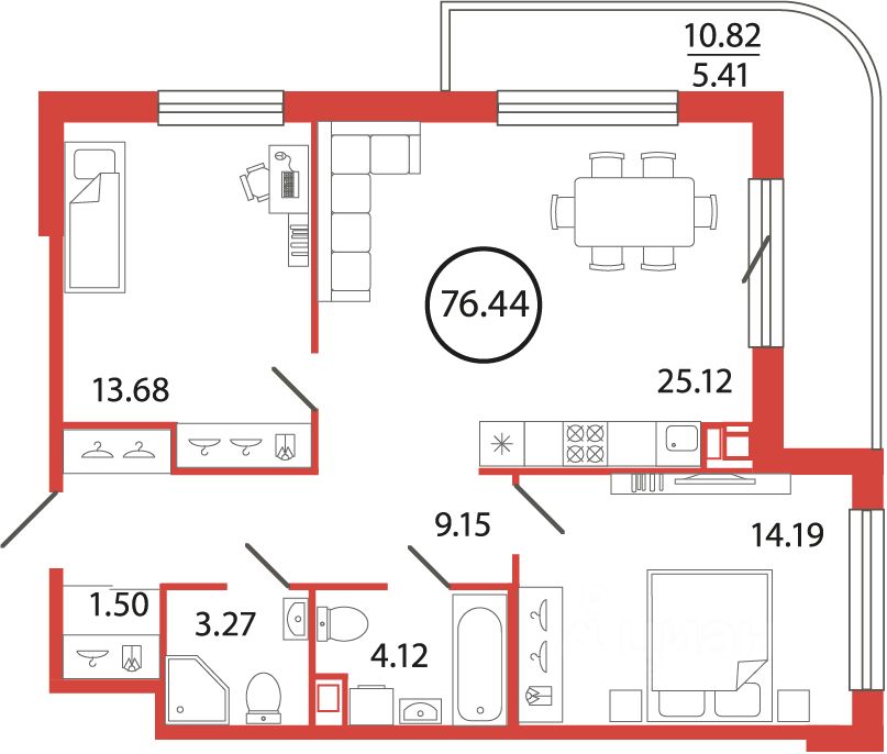 Продаётся e3 комнатная квартира (евро) в жилищном комплексе "Энфилд" (корпус Дом 21 Секция 1). Общая площадь 76,44 кв. м, площадь комнат 13,68 кв.м, 14,19 кв.м. 2 санузла. Квартира расположена на 8 этаже 12 этажного дома. Срок сдачи корпуса IV квартал 2027 года.