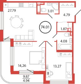 Продаётся e3 комнатная квартира (евро) в жилищном комплексе "Энфилд" (корпус Дом 21 Секция 2). Общая площадь 74,01 кв. м, площадь комнат 13,27 кв.м, 14,26 кв.м. 2 санузла. Квартира расположена на 8 этаже 12 этажного дома. Срок сдачи корпуса IV квартал 2027 года.