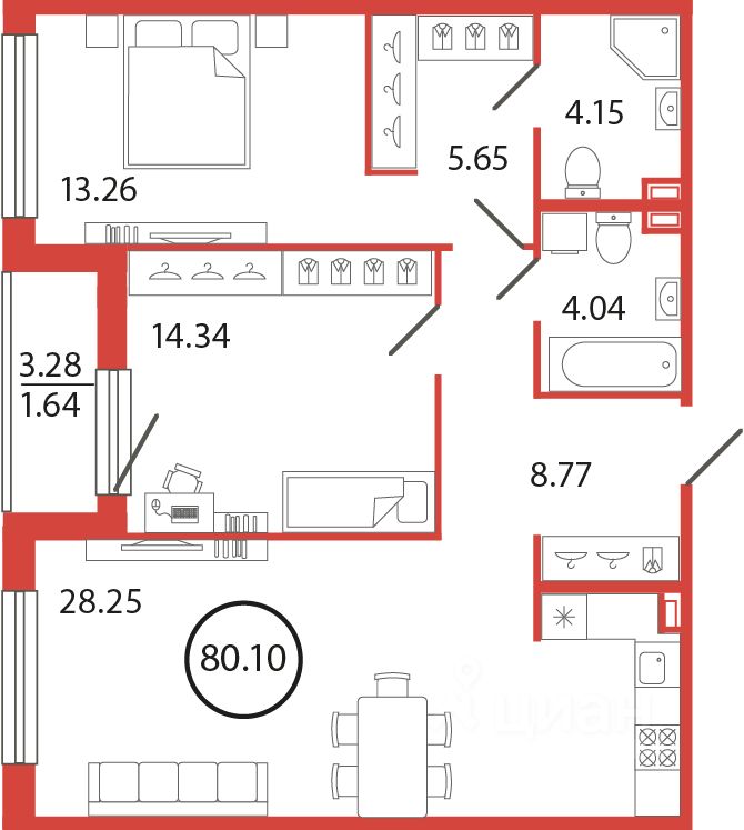 Продаётся e3 комнатная квартира (евро) в жилищном комплексе "Энфилд" (корпус Дом 21 Секция 2). Общая площадь 80,1 кв. м, площадь комнат 13,26 кв.м, 14,34 кв.м. 2 санузла. Квартира расположена на 10 этаже 12 этажного дома. Срок сдачи корпуса IV квартал 2027 года.
