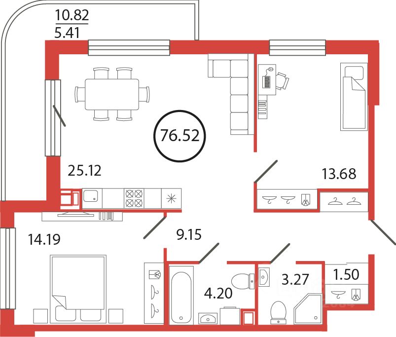 Продаётся e3 комнатная квартира (евро) в жилищном комплексе "Энфилд" (корпус Дом 21 Секция 2). Общая площадь 76,52 кв. м, площадь комнат 14,19 кв.м, 13,68 кв.м. 2 санузла. Квартира расположена на 11 этаже 12 этажного дома. Срок сдачи корпуса IV квартал 2027 года.