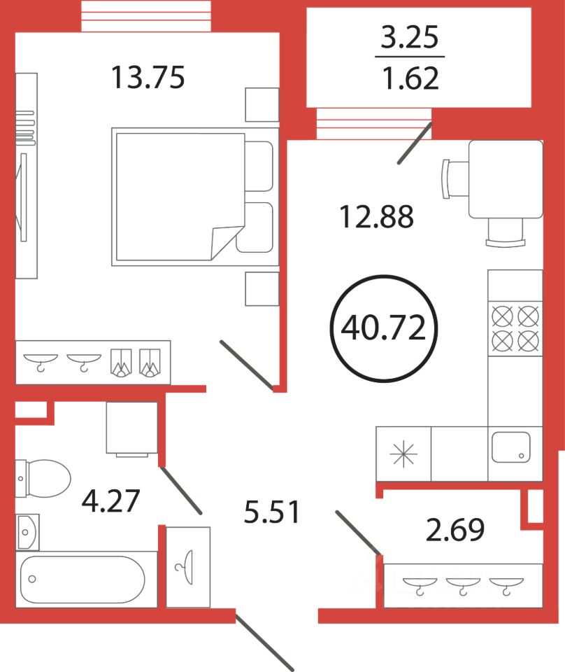 Продаётся 1 комнатная квартира в жилищном комплексе "Энфилд" (корпус Дом 20 секция 3). Общая площадь 40.72 кв. м, площадь комнат 13.75 кв.м. совмещеный санузел. Квартира расположена на 2 этаже 12 этажного дома.Корпус сдан.