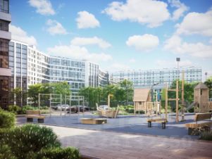 На территории "Аквилон ZALIVE" появится "зелёная набережная" (проект студии DEREVO PARK) - пешеходная аллея протяжённостью 300 метров с дизайнерским освещением и зонами отдыха, а также два "цветочных острова". Двор будет закрыт для машин, там установят детские площадки, спортивную зону workout и велопарковки.