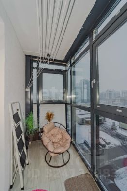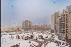 • Балкон с видом: На утепленном балконе обустроена комфортная рабочая зона со столом и шкафом. С балкона открывается приятный прямой вид во двор, а угловой вид — на зеленую зону, детскую площадку и школу.