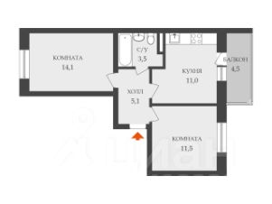 Две полноценные комнаты: 11,5 м² и 14,1 м² — идеально для семьи или тех, кто ценит личное пространство.
