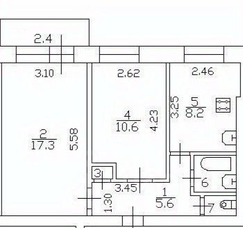 Квартира имеет продуманную планировку с жилой площадью 28 квадратных метров ( комнаты 17,3 10,6) и кухней площадью 8,2 квадратных метров. Также имеется раздельный санузел и балкон, откуда открывается вид на улицу.