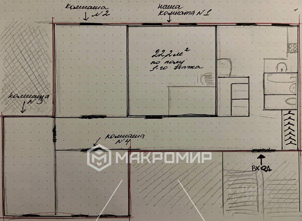 Общая площадь комнаты 22,20 кв. м+ второй этаж, с жилой площадью 7,5 кв. м