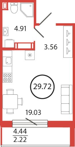 Продаётся студия в жилищном комплексе "Энфилд" (корпус Дом 21 Секция 2). Общая площадь 29,72 кв. м, площадь комнат 19,03 кв.м. Санузел. Квартира расположена на 5 этаже 12 этажного дома. Срок сдачи корпуса IV квартал 2027 года.