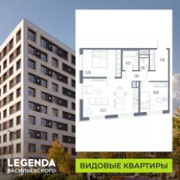 2-комн. квартира с предчистовой отделкой в ЖК "LEGENDA Васильевского" на 3 этаже. Общая площадь: 65.61 кв.м., жилая: 23.85 кв.м., площадь просторной кухни-столовой: 25.21 кв.м. Угловая квартира, очень светлая, естественная вентиляция при открытии окон. В квартире один раздельный санузел. Высота потолков 2.72 м.