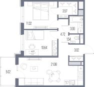 Двухкомнатная квартира от застройщика с предчистовой отделкой в ЖК "LEGENDA Васильевского" на 4 этаже. Общая площадь: 58.89 кв.м., жилая: 21.96 кв.м., площадь просторной кухни-столовой: 21.08 кв.м. Комнаты изолированные, все окна выходят на одну сторону. В квартире один балкон, один раздельный санузел. Высота потолков 2.72 м.