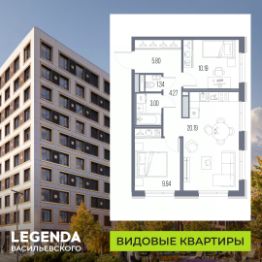 2-комн. квартира с предчистовой отделкой в ЖК "LEGENDA Васильевского" на 5 этаже. Общая площадь: 54.73 кв.м., жилая: 20.13 кв.м., площадь просторной кухни-столовой: 20.19 кв.м. Угловая квартира, окна oбecпeчивaют paвнoмepнoe ocвeщeниe в тeчeниe дня. В квартире один раздельный санузел. Высота потолков 2.72 м.