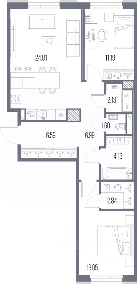 Просторная 2-комн. квартира в ЖК "LEGENDA Васильевского" на 10 этаже. Общая площадь: 72.53 кв.м. Высота потолков 2.72 м.
