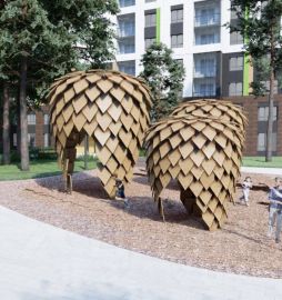 Следуя от частного к общему, от малой формы к крупной - от дерева в вашем дворе к арт объектам, выполненным в цветовых решениях хвойных пород, мы продумали эргономичные формы и минималистичную красоту квартала.